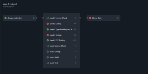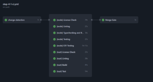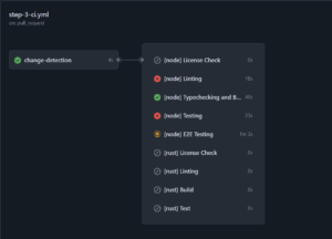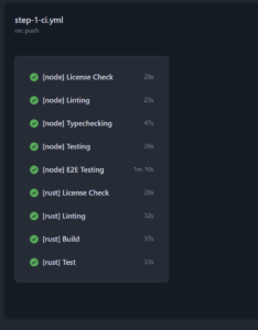 上記のようなワークフローでは、Node.js と Rust の CI がそれぞれ 1 つの job にまとまっており、各ステップが逐次実行されるため、CI の実行時間が長くなってしまいます。