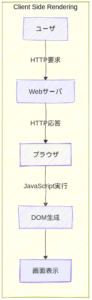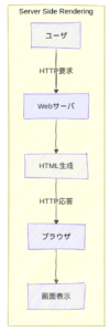 SSRはその逆で、サーバ側でWebページを生成してからクライアント側に送信し、ブラウザで表示します。