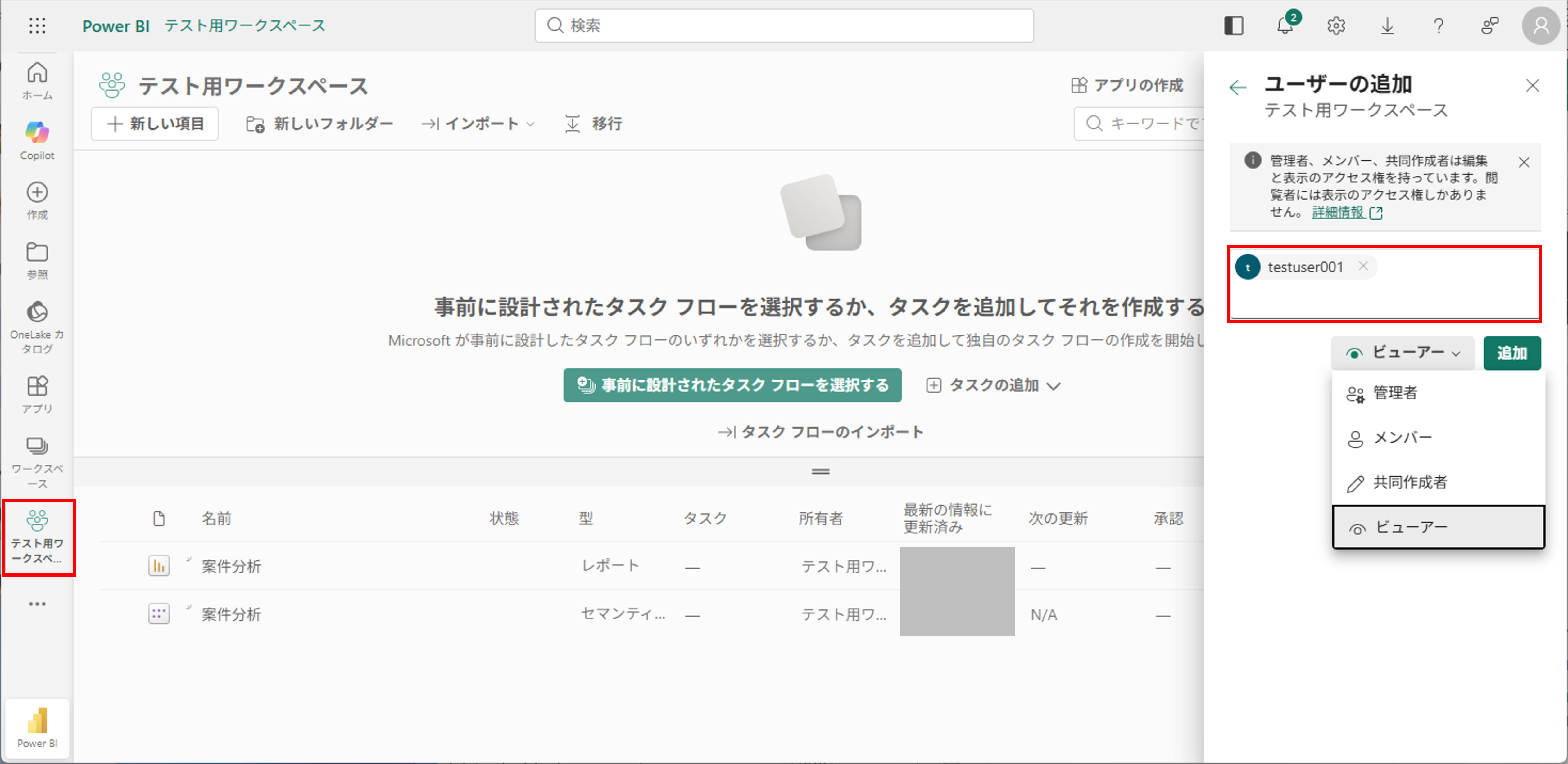 ・ワークスペースへのロール割り当て