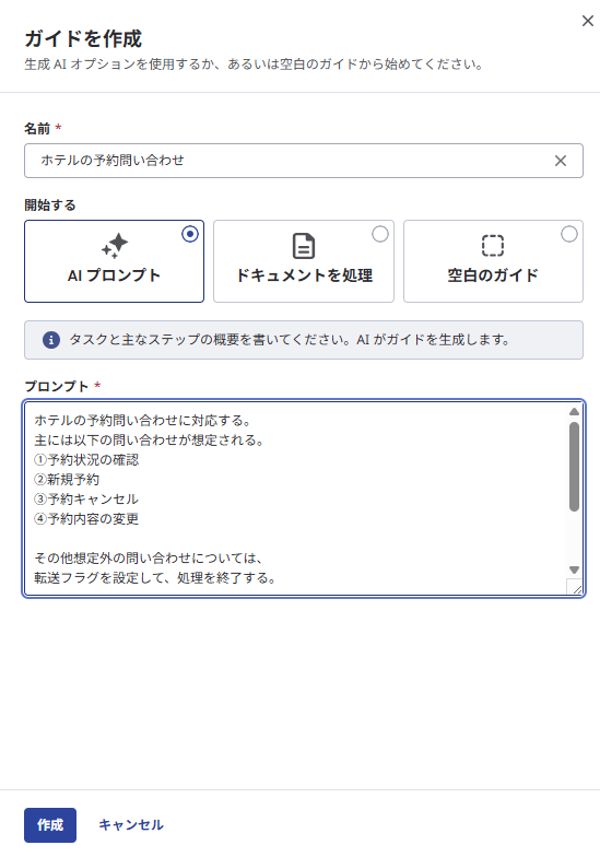 プロンプトの記載が完了したら、Guidesの作成が始まります。