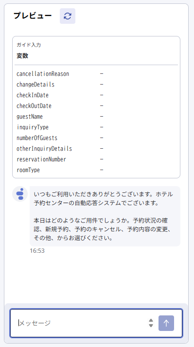 IVRに組み込む前にプレビュー機能を使うことで、チャット形式で動きの確認ができます。