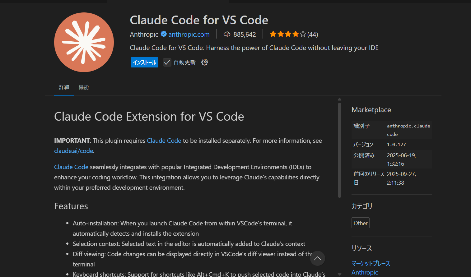▼ VS Codeで利用可能なClaude Codeの拡張機能