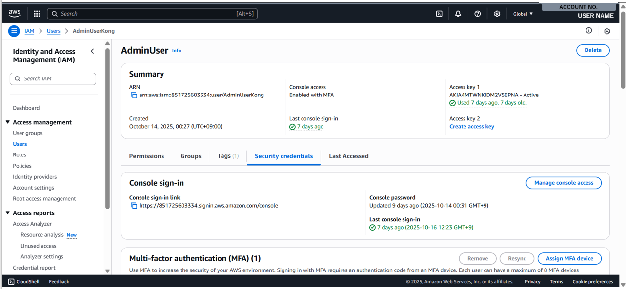 With the above setup, you now have an IAM user account that you can use for standard AWS operations. When you sign-in for the first time, you will be prompted to use the sign-in info credentials that was set before, followed by using the MFA that was setup earlier. It should also prompt you to change the password after the initial sign-in.