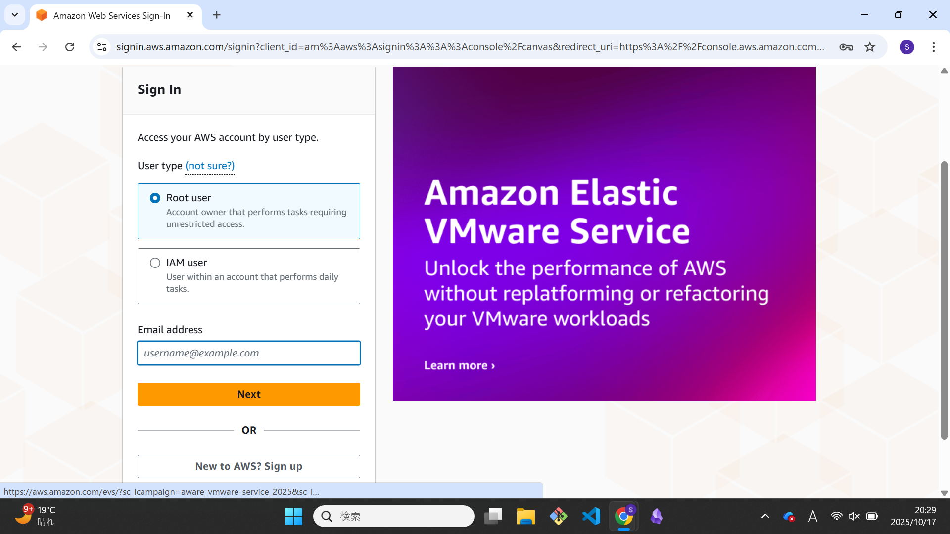 The sign in process is different for the root user account and IAM user account, as shown below:
